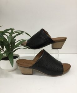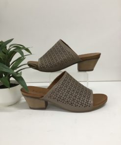 RAMIE by Bueno, is a gorgeous and stylish slide on heel. With its cut out design and wood look heel, the Ramie fits perfectly with your favourite pants or summer skirt.
