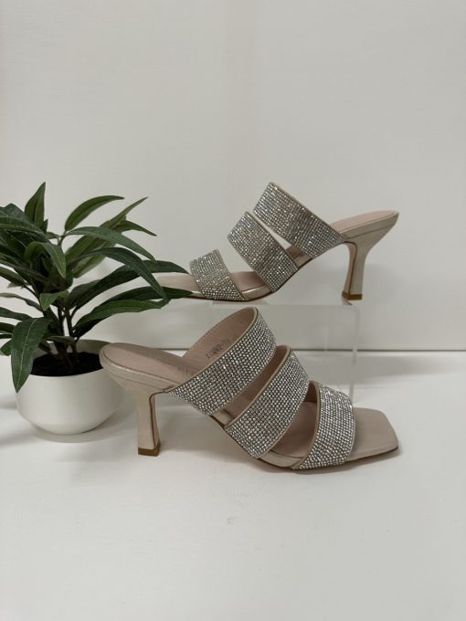 Shine the night away with these stunning heels, LOMME by Top End. This amazing heel is perfect for a wedding or special event. With a soft metallic finish and triple straps your feet will sparkle on the dance floor.